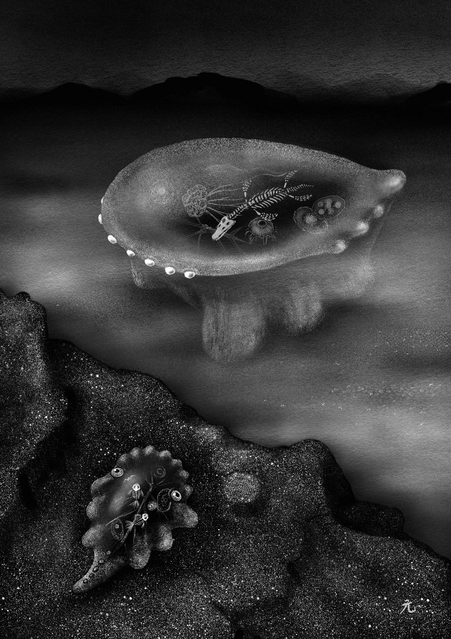 このシリーズの謎生物の中ではかなりずっしりとボリュームがあり、内部の奥行きもかなり深いので覗いた時の立体感がいい感じの作品。