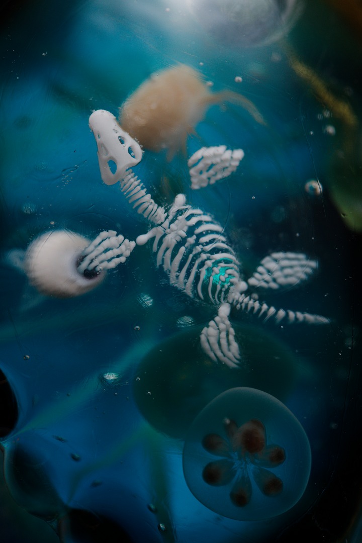 山のように大きな体の中にはプリオサウルスらしき首長竜の骨「骨竜」が共生しています。