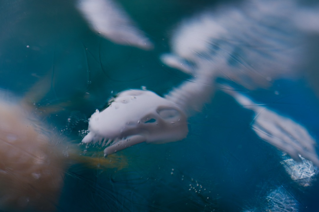 上からマグヌスを覗いてみると…その体内に共生しているのは首長竜らしき骨格の「骨竜」。