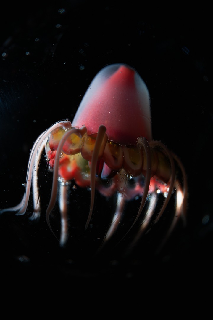 クロカムリクラゲはクラゲシリーズ作品の中で唯一の冠クラゲ目に属するクラゲで、その独特の形態から構造の再現にかなり苦労した種です。