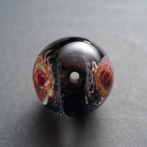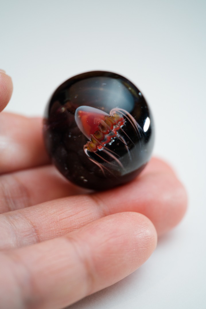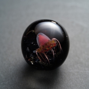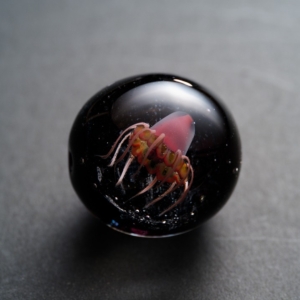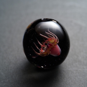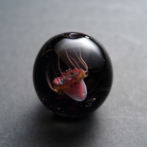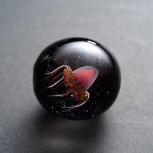 深海棲のクロカムリクラゲが両面に1個体ずつ入っているクラゲシリーズのトンボ玉。