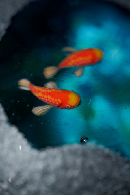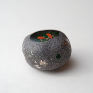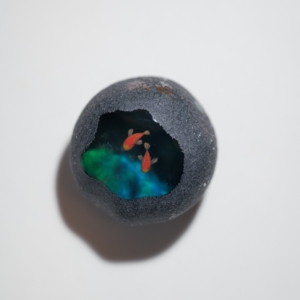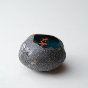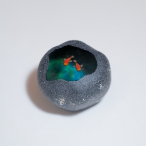 中に魚が棲んでいるという不思議な石「魚石」がモチーフの作品。