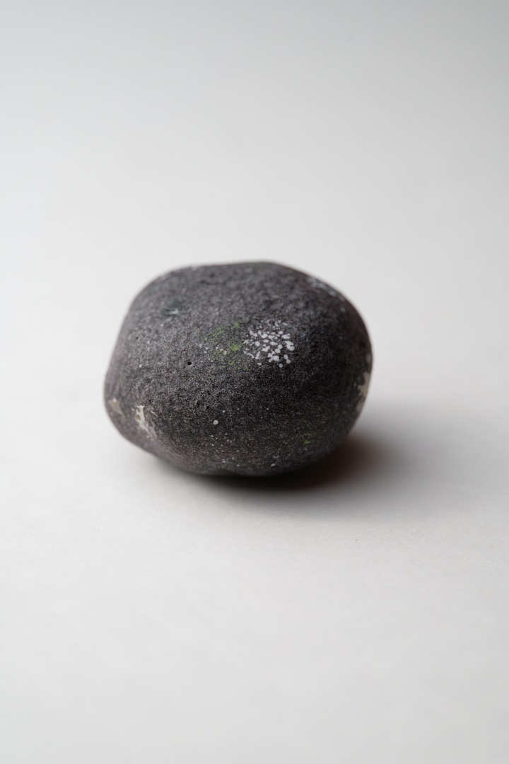 本品は特に自然の石ころっぽさが感じられるように程よく歪な形に、そして2匹の魚たちが寄り添って仲良く泳いでいる様子をイメージしながら制作しました。