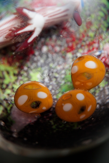 久しぶりに水球シリーズのトンボ玉を制作しました。